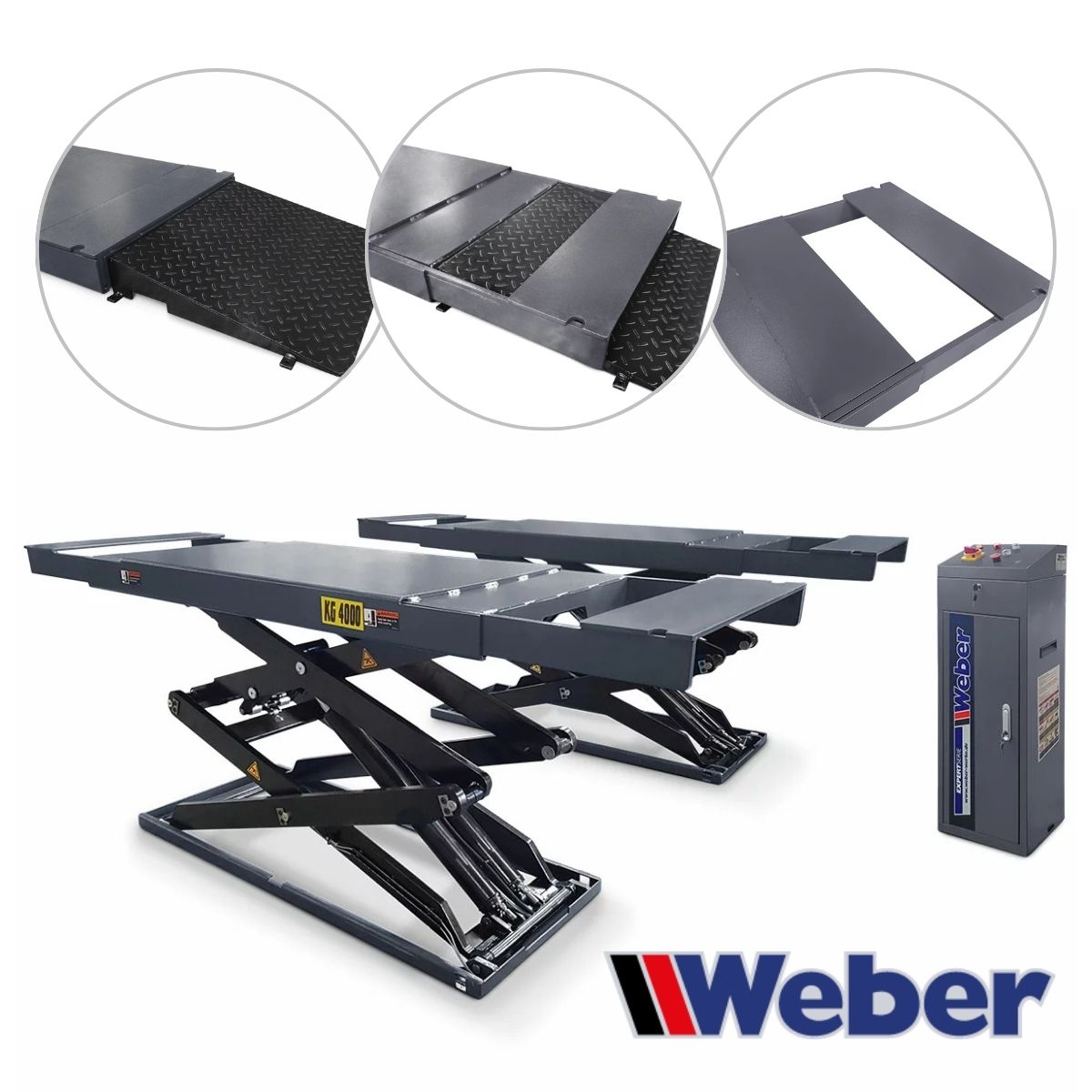 Podnośnik nożycowy podposadzkowy z najazdami krótkimi 4T 400V Weber model DSH-400